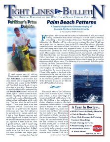 THEOFFICIALMAGAZINEOFTHEWESTPALMBEACHFISHINGCLUB2013VOL79NO.1AYearInReview...KDWClassicDerbyResultsClubMemberNewsNewClubRecordsFishingContestStandingsClubOutingReviewsMembershipRosterFoundationNewsMuchMorecontinuedonPage12continuedonPage46PottlitzersPrizeDolphinLocalanglersarestilltalkingabouttheshWPBFCmemberJayPottlitzerlandedearlierthisyear.HereshowhecaughttheshofalifetimeandlandedintheWPBFCAllTimeClubRecordBook.Itwasacleardayinmid-May.ReportsofanimprovingdolphinbitepromptedJayandDianeDiMarcotoventureoff-shoreJupiterInletinsearchofmahi.Beforelongtheyfoundthemselvesover20milesoutandbattlinggafferdolphintheyhadhookedwhiletroll-ing.Thatwaswhentherealredrillbegan.Thereweresomeotherfreeswimmersaround.Dianesshwasreadyforthegaffwhenthebigshrstswamintoview.SoItoldhertobepatientwhileIbaitedapitchrod.IhadaPennTorquespinningreelouttriggedwithbraidedlineanda60pounduorocarbonleaderreadytogo.IpitchedafreshsquidoutthenIgaffedhershanditwasntlongbeforeIsawthelineonmypitchrodscreamingtowardsthebow.Ididntreallyknowhowbigitwasuntiltheshwentairborneandbegangrey-houndingPalmBeachPatternsbyTomTwyfordWPBFCPresidentFewplacesoffertheincrediblevarietyofsaltwatershandyear-roundshingaccessthatPalmBeachCountyhastooffer.Thereisliterallysomethingtoshforeverydayoftheyear.TheGulfstreamplaysaninuentialrole.NowhereofftheentireeasternseaboarddoesthislifegivingwarmwatercurrentcomeanyclosertotheU.S.thanoffourshores.Oursub-tropicalclimateacontinentalshelfthatbeginstoabruptlywidenoffJupiterandasafedeep-waterinletplaysupportiveroles.ItisnowonderthatthePalmBeacheshasbeenthesceneofmanygroundbreakinginnovationsinoursport.HavingprocessedcountlessshingcontesttournamentandAllTimeClubRecordentriesoverthepast26yearsattheWestPalmBeachFishingClubIhavebeeninauniquepositiontoobserveverydistinctseasonalsh-ingpatternsalongwiththeenvironmentalfactorsthattriggerthearrivalordepartureofshoffourcoast.ThefollowingisbynomeansadenitiveguidetoshingthePalmBeachestherearenoabsolutesinshingbutratherasolidtemplateforwhatkindofshingtoanticipateastheseasonprogresses.Ihopethisanglingplaybookaidsnewcomerstotheareaorhelpsexpe-riencedanglersplanspecictripsorattheveryleastserveasareminderofthefantasticshingweareblessedwithoffPalmBeachCounty.JanuaryThesailshsectoroftheGulfstreamisatitsbestthistimeofyear.Findingpodsofbaitacleanwateredgeoratemperaturebreakwillleadyoutothesh.Kiteshingisthetechniqueofchoiceallowinganglerstoeffectivelyconcentratetheireffortsinveryspecificdepthsoverthenarrowshelf.Livegoggle-eyesmallbluerunnersandsardinesareamongthebestbaitstouse.Deployingadriftanchorwillhelpyoustayinthestrikezonelonger.TheJupiterLedgethezoneeastoftheBreak-ersandtheBathTennisClubonPalmBeachandthewatersoffBoyntonsMartiniGlasswatertow-erarehistoricallyproductiveareasforsails.Depthiskey.BesuretomonitorradiochatterVHF19isASeasonalPlaybookorSaltwaterAnglingofCentralNorthernPalmBeachCounty